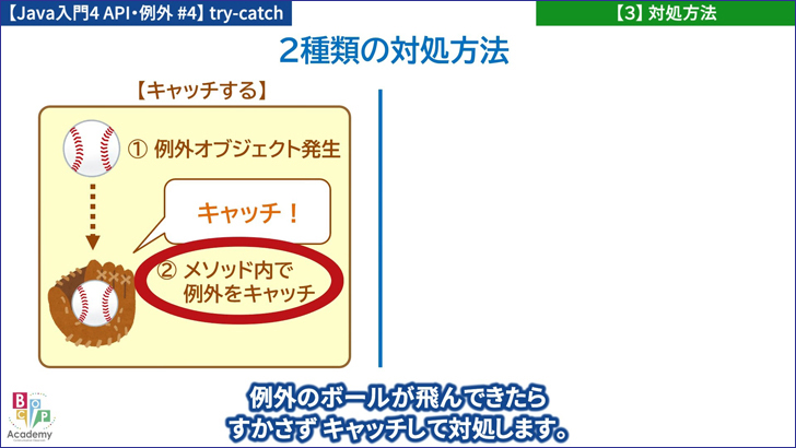 Javaでは、大きく2つの対処方法が用意されています。