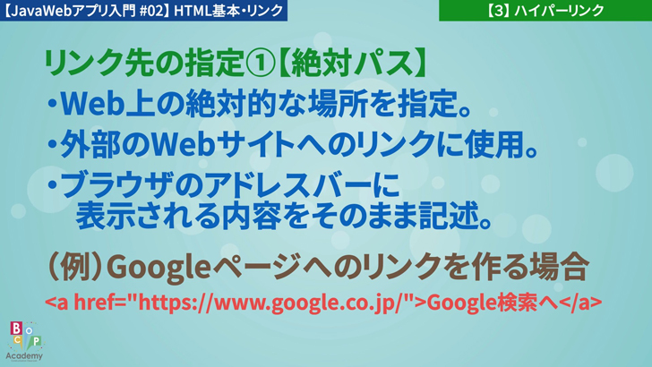 (例)Googleページへのリンクを作る場合