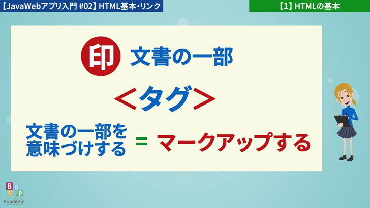 タグは、文書の部分に意味づけをする